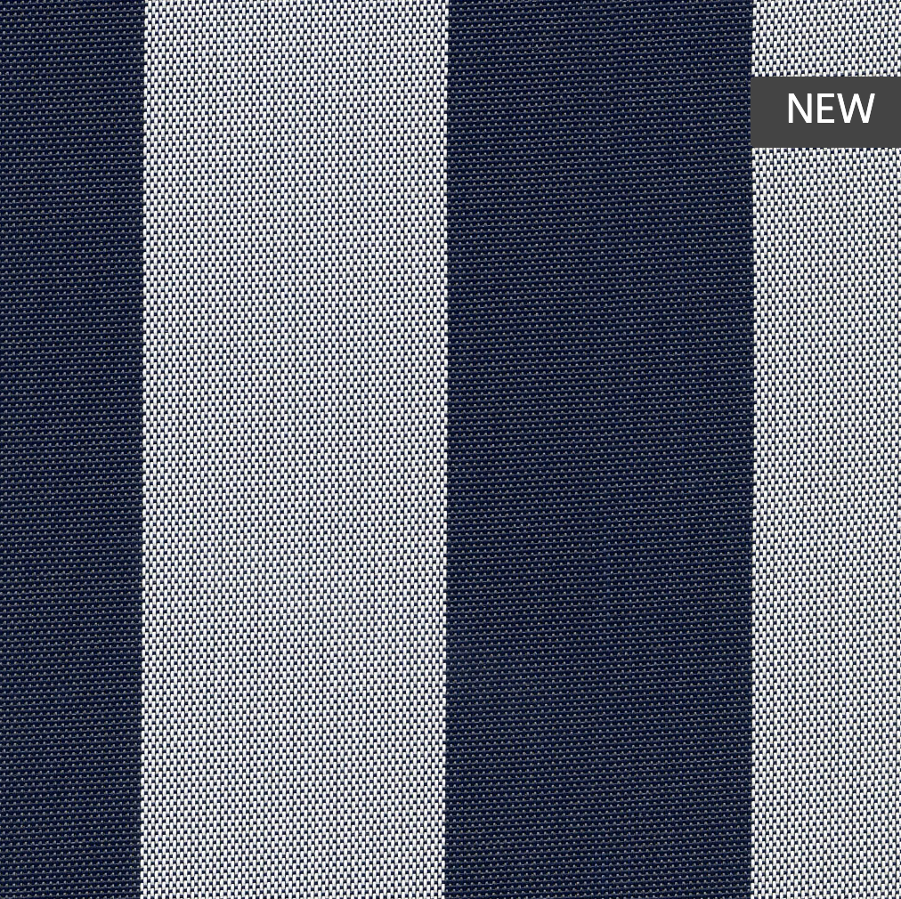 Tailored to the demands of the outdoor fabric industry, the Phifertex Cushion Collection provides increased flexibility and a gentler touch, ideal for residential and commercial furniture applications. Seen here in Indigo Cushion Stripe, the sling fabric is made with smaller diameter vinyl-coated polyester yarns than other Phifertex offerings, these fabrics are designed to resist UV rays and fading. They also feature integrated antimicrobial protection, offering superior defense against bacteria, mold, and mildew.